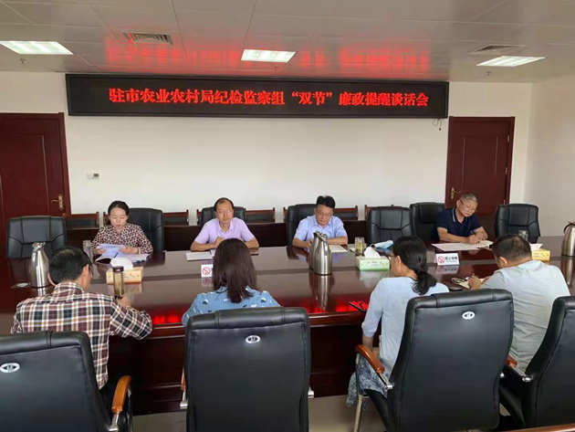 為進(jìn)一步嚴明中秋、國慶雙節期間節日紀律,持續凈化節日風(fēng)氣,推動(dòng)全面從嚴治黨向縱深發(fā)展,確保過(guò)一個(gè)廉潔、祥和的“雙節”,2021年9月30日上午,駐市農業(yè)農村局紀檢監察組召開(kāi)由所監督單位辦公室、財務(wù)科、機關(guān)紀委主要負責人參加的“雙節”廉政提醒談話(huà)會(huì )議。