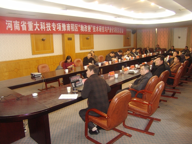 11月17日下午,河南省重大科技專(zhuān)項豫南“秈改粳”技術(shù)研究與產(chǎn)業(yè)化項目總結會(huì )召開(kāi)。省農科院、河南農業(yè)大學(xué)、省農技推廣總站、駐馬店市農科院、羅山縣農科所、平橋農業(yè)局等21個(gè)項目協(xié)作單位負責同志和技術(shù)人員以及項目主持單位信陽(yáng)市農科院的技術(shù)骨干50余人參加了會(huì )議。副院長(cháng)祁玉良研究員主持會(huì )議。