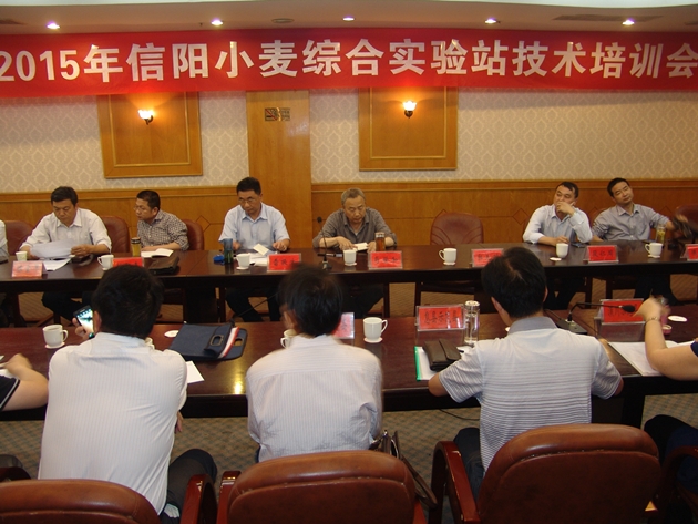 在下午舉行的技術(shù)培訓會(huì )上,首席科學(xué)家肖世和研究員作了“國家小麥產(chǎn)業(yè)技術(shù)體系的支撐作用”的報告,從生產(chǎn)良種化、栽培機械化、植保輕簡(jiǎn)化、產(chǎn)品優(yōu)質(zhì)化等四個(gè)方面重點(diǎn)介紹了小麥產(chǎn)業(yè)技術(shù)體系對國家糧食生產(chǎn)發(fā)展的支撐作用,使大家對產(chǎn)業(yè)體系有了更加深入細致的了解,對體系工作和體系人有了更深的敬意;郭天財教授作了“小麥高產(chǎn)高效關(guān)鍵技術(shù)”的報告,介紹了世界糧食安全現狀、河南省小麥生產(chǎn)的地位、小麥生產(chǎn)發(fā)展對策措施、信陽(yáng)小麥生產(chǎn)發(fā)展應注意的問(wèn)題等;陳金平站長(cháng)介紹了信陽(yáng)小麥生產(chǎn)的基本情況,信陽(yáng)小麥綜合試驗站的工作開(kāi)展情況。