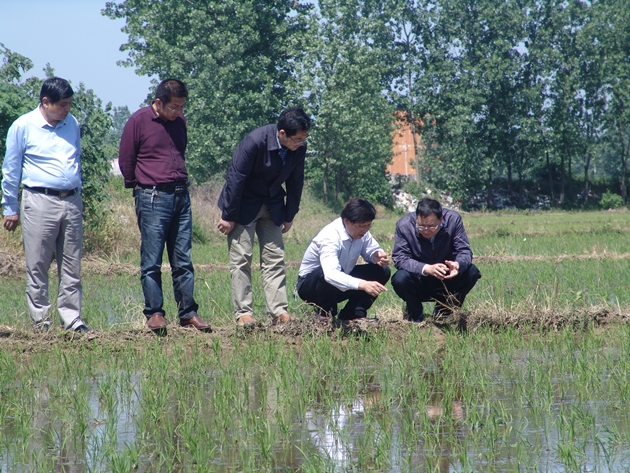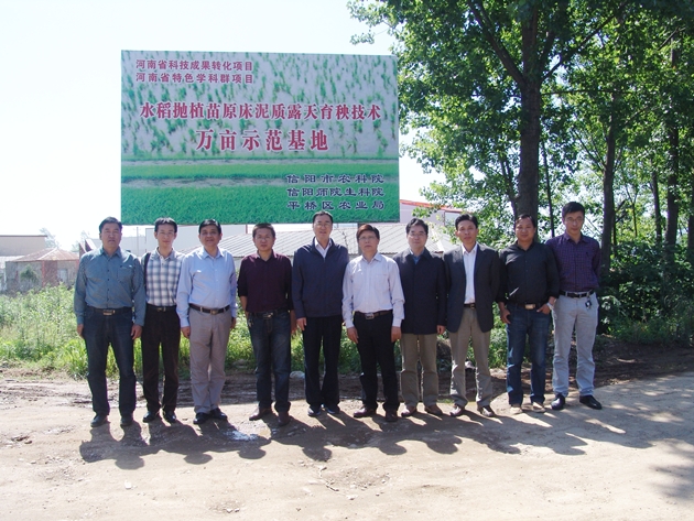5月16日,信陽(yáng)師范學(xué)院副校長(cháng)劉彥明、該院生命科學(xué)院院長(cháng)袁虹雨一行五人在院黨委書(shū)記韓勛來(lái)、正處級干部宋世枝的陪同下觀(guān)摩了位于平橋區五里辦事處萬(wàn)畝水稻拋植苗“泥質(zhì)法”育、拋秧示范基地。該基地是去年我院與信陽(yáng)師范學(xué)院簽署戰略合作協(xié)議以來(lái),雙方緊緊圍繞中原經(jīng)濟區建設和大別山革命老區振興發(fā)展規劃,充分發(fā)揮各自?xún)?yōu)勢,積極開(kāi)展項目合作,共同打造優(yōu)勢特色學(xué)科群,突出社會(huì )貢獻項目工作的首批成果。