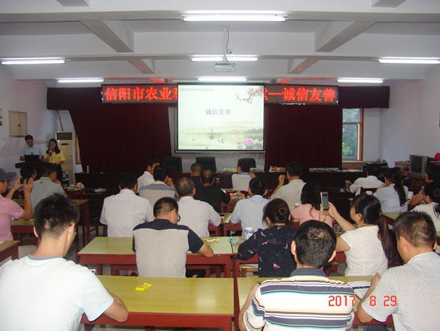 活動(dòng)共分“唱歌曲、誦經(jīng)典、看短片、講故事、作點(diǎn)評、作承諾、學(xué)禮儀、送吉祥”八個(gè)環(huán)節。在主持人的引導下,活動(dòng)在《朋友》的歌聲中開(kāi)始。主持人帶領(lǐng)大家誦讀了《道德經(jīng)》中“道可道,非常道,名可名,非常名”、《大學(xué)》中“大學(xué)之道,在明明德,在親民,在止于至善” 等關(guān)于誠信友善的道德經(jīng)典。觀(guān)看了中科院院士、有“當代后稷”和“中國小麥遠緣雜交之父”之稱(chēng)的小麥育種專(zhuān)家李振聲事跡的短片,李院士用實(shí)際行動(dòng)詮釋了誠信的含義,是誠信友善的實(shí)踐者、踐行者和典范。他們團隊成員這種和諧的人際關(guān)系對他的科研事業(yè)產(chǎn)生了巨大的親和力和凝聚力,從而使他能夠在科研的道路上攻堅克難,永攀高峰。通過(guò)講述“一諾千金”和“六尺巷”的故事,告訴大家誠信、友善的道德品行的重要性。