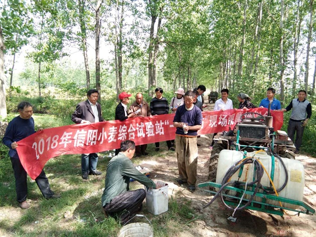 4月19日,國家小麥產(chǎn)業(yè)技術(shù)體系信陽(yáng)綜合試驗站在息縣小茴鎮張老莊村召開(kāi)小麥“一噴三防”技術(shù)培訓暨防控現場(chǎng)會(huì ),羅山、息縣、淮濱、潢川、固始縣5個(gè)示范縣的相關(guān)單位負責人和技術(shù)骨干以及種植大戶(hù)共40多人參加了此次活動(dòng)。