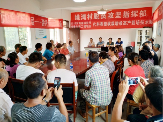 進(jìn)入8月以來(lái),我院食用菌專(zhuān)家團隊先后多次來(lái)到?jīng)负訁^游河鄉開(kāi)展秋栽香菇生產(chǎn)技術(shù)培訓,為種植戶(hù)解疑答惑,助力脫貧攻堅。