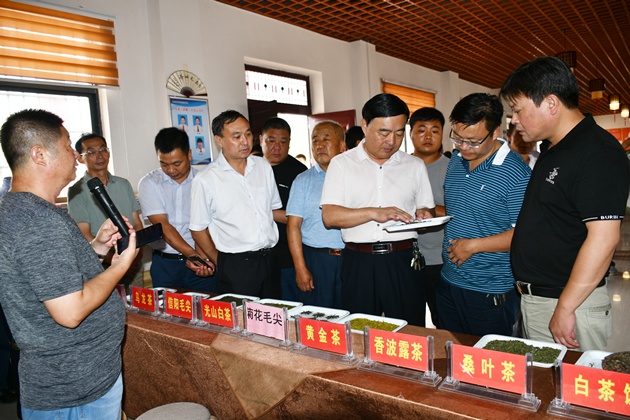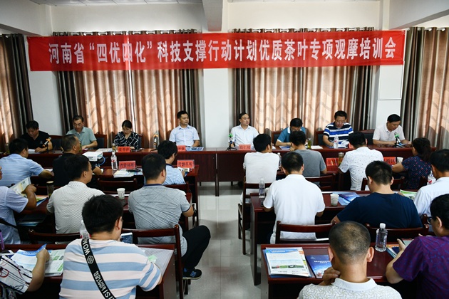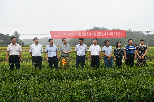 為實(shí)施好河南省“四優(yōu)四化”科技支撐行動(dòng)計劃優(yōu)質(zhì)茶葉專(zhuān)項,推廣茶樹(shù)新品種、新產(chǎn)品和新技術(shù),9月12日,由市農科院舉辦的河南省“四優(yōu)四化”科技支撐行動(dòng)計劃優(yōu)質(zhì)茶葉專(zhuān)項“優(yōu)質(zhì)茶葉綠色高效生產(chǎn)技術(shù)集成、示范”觀(guān)摩研討會(huì )在光山縣召開(kāi)。省農科院煙草所黨委書(shū)記程澤強,我院院長(cháng)段仁周、總農藝師段斌,市紀委市監委駐市農業(yè)局紀檢監察組組長(cháng)周應傳出席會(huì )議,省農業(yè)農村廳經(jīng)作站,省農科院資環(huán)所、農信所相關(guān)專(zhuān)家,以及我市各縣區農業(yè)農村局、農科所負責同志和科技人員,茶葉企業(yè)負責人共計140余人參加會(huì )議。