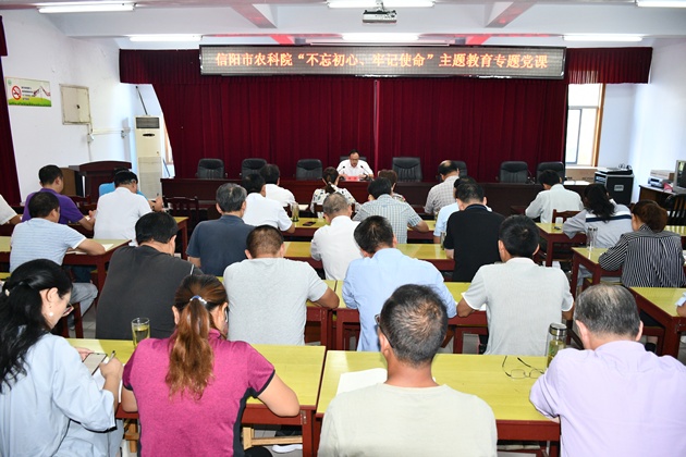 李杰以《守初心,擔使命,推進(jìn)新時(shí)代農業(yè)科研事業(yè)更加出彩》為題,從四個(gè)方面進(jìn)行了授課,一、堅定理想信念,深刻領(lǐng)悟共產(chǎn)黨人的初心和使命。共產(chǎn)黨人的初心和使命是為絕大多數人謀利益、為人民謀幸福、為中華民族謀復興。二、堅守科研為農,發(fā)揚光大守初心擔使命的光榮傳統。守初心擔使命是農科院的政治職責、光榮傳統、時(shí)代擔當。三、踐行初心使命,堅持以科研創(chuàng )新強農興農。踐行初心使命就要堅持“四個(gè)面向”、聚力強化信陽(yáng)農業(yè)科研事業(yè)、聚力增強科研創(chuàng )新供給能力、聚力樹(shù)立農業(yè)科技示范樣板、聚力夯實(shí)農業(yè)科技創(chuàng )新基礎。四、聚焦目標任務(wù),推動(dòng)主題教育走深走實(shí)。持續抓好理論學(xué)習、深入開(kāi)展調查研究、認真檢視反思問(wèn)題、狠抓問(wèn)題整改落實(shí)。