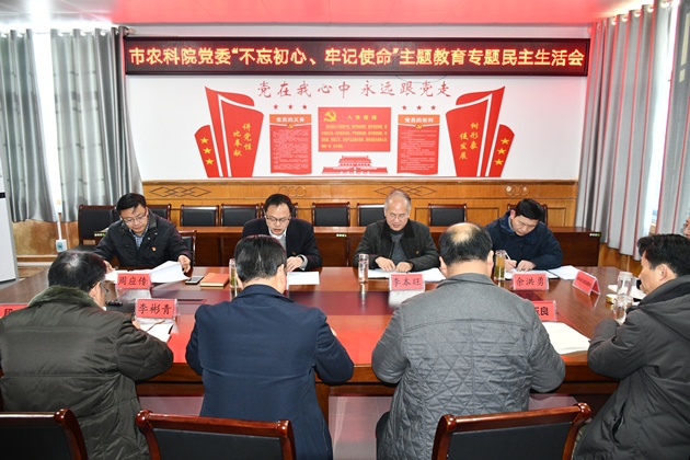 根據省、市《關(guān)于第二批主題教育單位開(kāi)好“不忘初心、牢記使命”專(zhuān)題民主生活會(huì )的通知》要求,12月5日上午,院黨委召開(kāi)“不忘初心、牢記使命”主題教育專(zhuān)題民主生活會(huì )。院黨委書(shū)記李杰主持會(huì )議,市委主題教育第一指導組副組長(cháng)李本旺到會(huì )指導,駐市農業(yè)農村局紀檢監察組組長(cháng)周應傳出席會(huì )議。