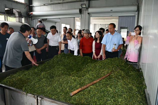 9月17日-18日,與會(huì )人員首先到桐柏縣丹峰山生態(tài)茶業(yè)有限公司參觀(guān)茯磚茶生產(chǎn)流程,詳細了解了茯磚茶生產(chǎn)得技術(shù)要點(diǎn)和發(fā)展前景,并聽(tīng)取企業(yè)技術(shù)人員對茶葉資源利用方面的經(jīng)驗分享與介紹;隨后在光山縣誠信實(shí)業(yè)開(kāi)發(fā)有限公司,與會(huì )人員實(shí)地觀(guān)摩企業(yè)茶葉清潔化生產(chǎn)流程以及企業(yè)綠色防控技術(shù)及產(chǎn)品的配套使用情況,并集體參觀(guān)學(xué)習了企業(yè)借助生態(tài)優(yōu)勢,合理融入當地茶文化元素和開(kāi)發(fā)的旅游產(chǎn)品,學(xué)習借鑒基地進(jìn)行全面規劃打造茶旅融合精品示范點(diǎn)的經(jīng)驗。