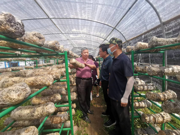 6月14日,河南省食用菌產(chǎn)業(yè)技術(shù)體系首席科學(xué)家、省農科院資環(huán)所所長(cháng)張玉亭研究員、省科學(xué)技術(shù)廳總農藝師王備戰一行到信陽(yáng)市光山縣開(kāi)展香菇生產(chǎn)技術(shù)指導。河南省食用菌產(chǎn)業(yè)技術(shù)體系信陽(yáng)綜合試驗站站長(cháng)張應香副研究員、我院食用菌專(zhuān)家龔鳳萍副研究員、光山縣文殊鄉東岳村第一書(shū)記潘瑛矗陪同。