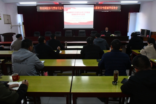 院黨組副書(shū)記、院長(cháng)鐘思志同志以《推進(jìn)新時(shí)代黨建和業(yè)務(wù)工作融合發(fā)展的思考與實(shí)踐》為題講授了專(zhuān)題黨課。黨課圍繞“思考‘為何融’,領(lǐng)會(huì )機關(guān)黨建和業(yè)務(wù)工作融合發(fā)展的意義、明確‘融什么’,探索機關(guān)黨建與業(yè)務(wù)工作深度融合發(fā)展的路徑、探索‘怎么融’,總結機關(guān)黨建與業(yè)務(wù)工作深度融合的成效、機關(guān)黨建與業(yè)務(wù)工作深度融合發(fā)展的幾點(diǎn)體會(huì )”等四個(gè)方面,對農業(yè)科研單位廣大黨員干部如何提高政治站位、如何結合實(shí)際開(kāi)展好農業(yè)科技服務(wù)工作指明了方向;對如何更好開(kāi)展主題教育,深入系統學(xué)習黨的最新創(chuàng )新理論成果指明了方法路徑,為努力把主題教育成果轉化為推動(dòng)我院高質(zhì)量發(fā)展的實(shí)踐成果鼓舞了信心、提振了精神。