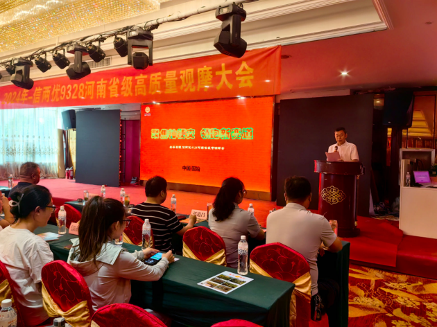 為助力信陽(yáng)水稻高質(zhì)量發(fā)展,9月8日,由國家水稻產(chǎn)業(yè)技術(shù)體系信陽(yáng)綜合試驗站、河南省科技特派員服務(wù)隊、我院聯(lián)合合肥金谷荃銀種業(yè)有限公司主辦的2024年“信兩優(yōu)9328”河南省級高質(zhì)量觀(guān)摩大會(huì )在信陽(yáng)市固始縣成功舉辦。我院院長(cháng)鐘思志、總農藝師段斌,固始縣農業(yè)農村局負責同志,合肥金谷荃銀公司負責人以及種植大戶(hù)、經(jīng)銷(xiāo)商代表等150余人參加會(huì )議。