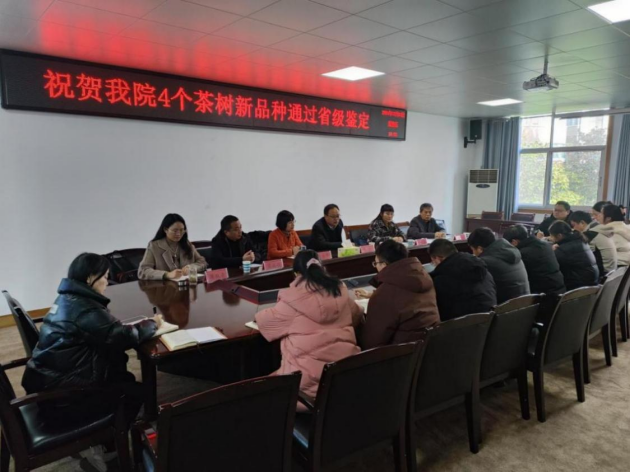 2024年12月13日,河南省茶樹(shù)新品種鑒定結果報告會(huì )在我院召開(kāi),會(huì )上,省經(jīng)濟作物推廣總站副站長(cháng)于紅衛宣布由我院自主選育的4個(gè)豫茶系列茶樹(shù)新品種“豫茶6號”“豫茶8號”“豫茶9號”“豫茶10號”等通過(guò)省級鑒定,并現場(chǎng)頒發(fā)鑒定證書(shū)。這4個(gè)品種具有發(fā)芽早、抗病蟲(chóng)能力強、抗旱抗寒性強、適應性強等特點(diǎn),具有較大的推廣價(jià)值。