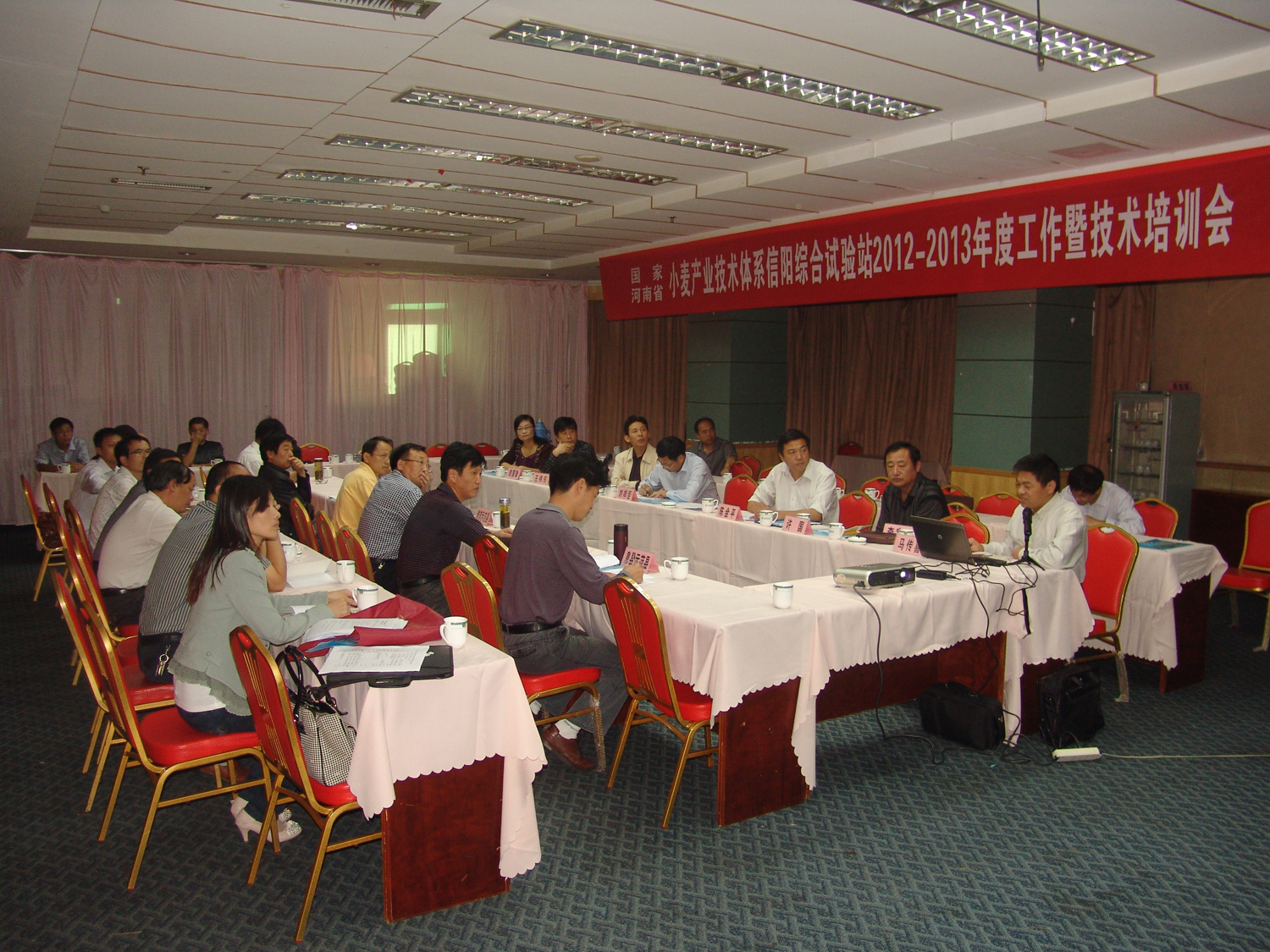 10月9-10日,國家和河南省小麥產(chǎn)業(yè)技術(shù)體系信陽(yáng)綜合試驗站在信陽(yáng)召開(kāi)了2012—2013年度工作暨技術(shù)培訓會(huì )議,市農科院副院長(cháng)劉祥臣副研究員、國家小麥產(chǎn)業(yè)技術(shù)體系信陽(yáng)綜合試驗站站長(cháng)陳金平研究員出席了會(huì )議。會(huì )議特邀了國家小麥產(chǎn)業(yè)技術(shù)體系崗位科學(xué)家、安徽農業(yè)大學(xué)副校長(cháng)、博士生導師馬傳喜教授出席會(huì )議。試驗站團隊成員,羅山、息縣、潢川、淮濱、固始五個(gè)體系示范縣農業(yè)局、農科所分管領(lǐng)導和技術(shù)骨干等50余人參加了會(huì )議。河南省小麥產(chǎn)業(yè)技術(shù)體系信陽(yáng)綜合試驗站站長(cháng)祁玉良研究員主持了會(huì )議。