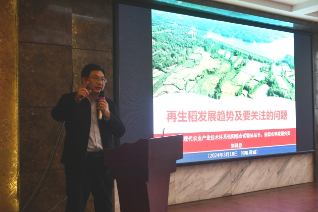 會(huì )上,河南省水稻體系首席專(zhuān)家尹海慶研究員,體系崗位專(zhuān)家、河南農業(yè)大學(xué)李俊周教授,省體系信陽(yáng)綜合試驗站站長(cháng)、我院劉祥臣研究員分別以水稻大面積單產(chǎn)提升、優(yōu)質(zhì)稻優(yōu)質(zhì)穩產(chǎn)生產(chǎn)技術(shù)、再生稻發(fā)展趨勢及要關(guān)注的問(wèn)題進(jìn)行了授課,詳細介紹了水稻產(chǎn)業(yè)的現狀和未來(lái)發(fā)展趨勢,指出了當前存在的問(wèn)題和挑戰。