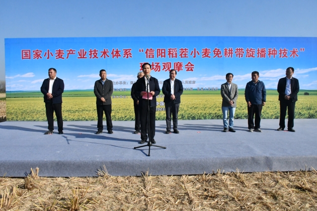 汪明君副市長(cháng)在致辭中表示,國家小麥產(chǎn)業(yè)技術(shù)體系“信陽(yáng)市稻茬小麥免耕帶旋播種技術(shù)”現場(chǎng)觀(guān)摩暨技術(shù)培訓會(huì )的召開(kāi),是信陽(yáng)堅決落實(shí)“扛穩糧食安全這個(gè)重任”的重大舉措,也是稻茬小麥播種新技術(shù)在信陽(yáng)落地開(kāi)花的重要見(jiàn)證。信陽(yáng)是全省小麥產(chǎn)量潛力最大的區域,免耕帶旋播種技術(shù)作為一項小麥栽培新技術(shù),基于機具設計創(chuàng )新和農藝優(yōu)化創(chuàng )新而成,能實(shí)現一播全苗,有效解決了稻茬小麥“播不下、出不齊、長(cháng)不好”的技術(shù)難題,節本增產(chǎn)效果顯著(zhù)。此次技術(shù)培訓會(huì )的舉辦,為信陽(yáng)弱筋小麥產(chǎn)業(yè)科技賦能、品質(zhì)提升、品牌建設提供了有利契機,也為加快老區振興發(fā)展注入新的強大動(dòng)力。相信在國家小麥產(chǎn)業(yè)技術(shù)體系各位專(zhuān)家的悉心指導下,信陽(yáng)弱筋小麥產(chǎn)業(yè)將會(huì )結出更加豐碩之果。