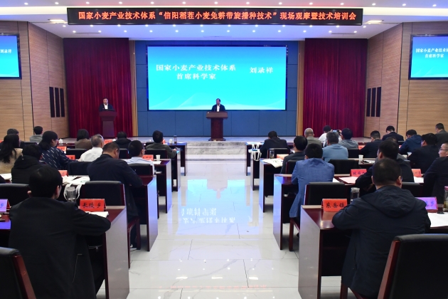 國家小麥產(chǎn)業(yè)技術(shù)體系“信陽(yáng)稻茬小麥免耕帶旋播種現場(chǎng)觀(guān)摩暨技術(shù)培訓會(huì )議”成功召開(kāi)